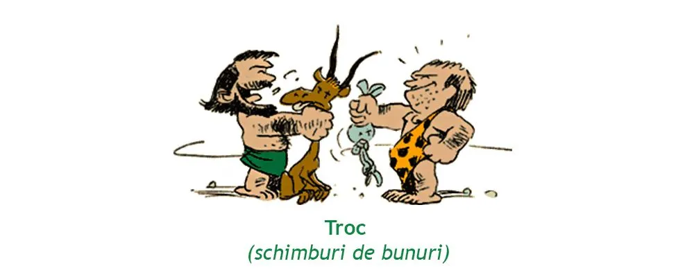 Înainte de apariția banilor, oamenii făceau comerț prin schimburi de bunuri. Acest tip de plată era cunoscut drept „troc”. Pieile de animale, sarea, grâul și chiar vitele erau primii „bani” ai oamenilor de cândva, greu de transportat, dar și numărat. În căutarea unui sistem de plată mai confortabil, oamenii au ajuns la ideea de a folosi lucruri mici pe post de bani, numiți „bani marfă”. Astfel, pentru plăți erau utilizate pietre, fildeș, dinți de animale și cochilii de scoici. În zona noastră, cel mai des se întâlneau vârfurile de săgeți. Ulterior, au început să fie confecționate primele monede.